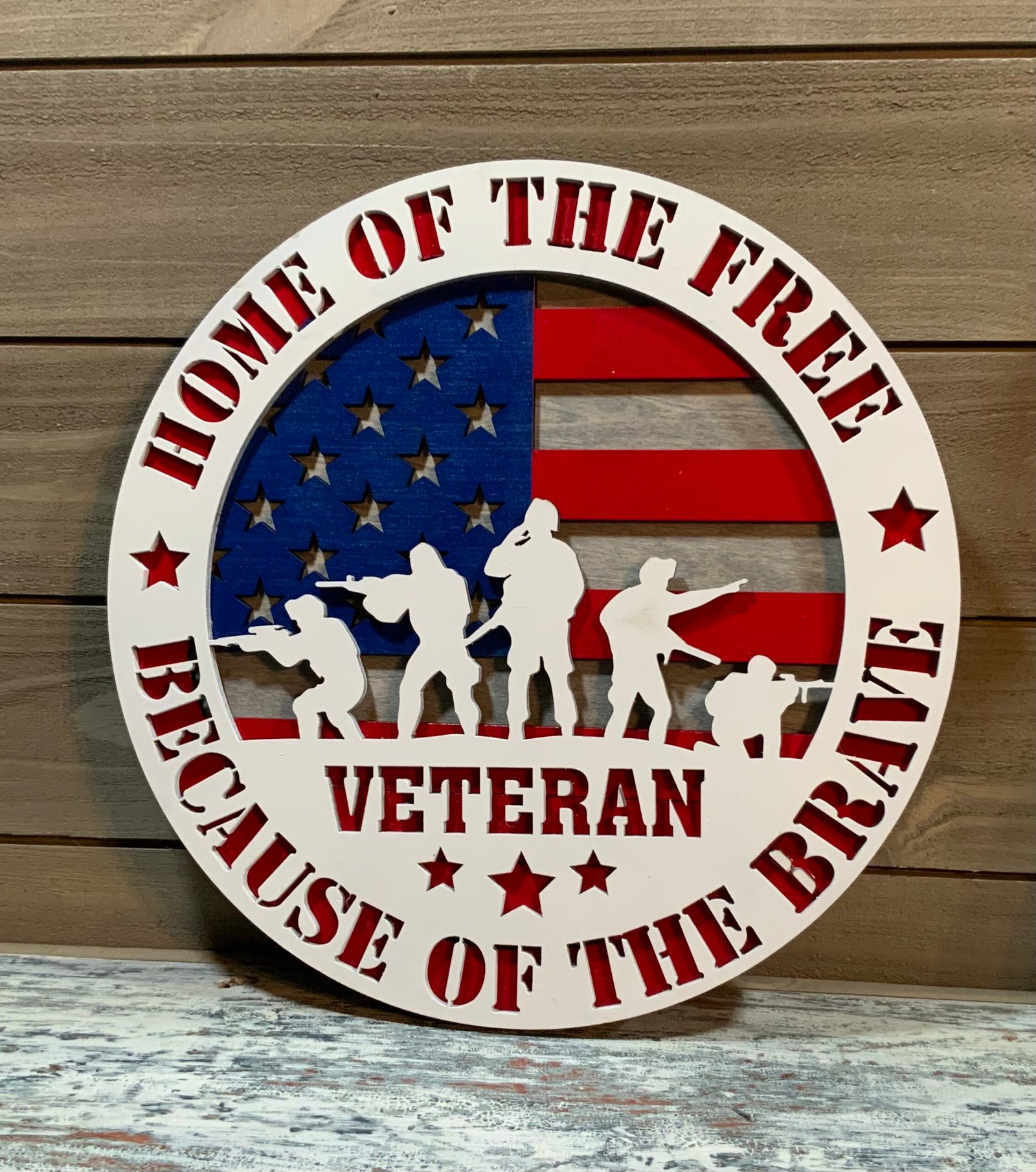 Show your respect and admiration for those who have dedicated their lives to serving our country with this beautiful veteran wall decor. Featuring an inspiring design that combines the American flag as the backdrop with the vivid message “HOME OF THE FREE BECAUSE OF THE BRAVE,” this piece is more than just a decoration—it’s a heartfelt tribute to the brave men and women who protect our freedom.